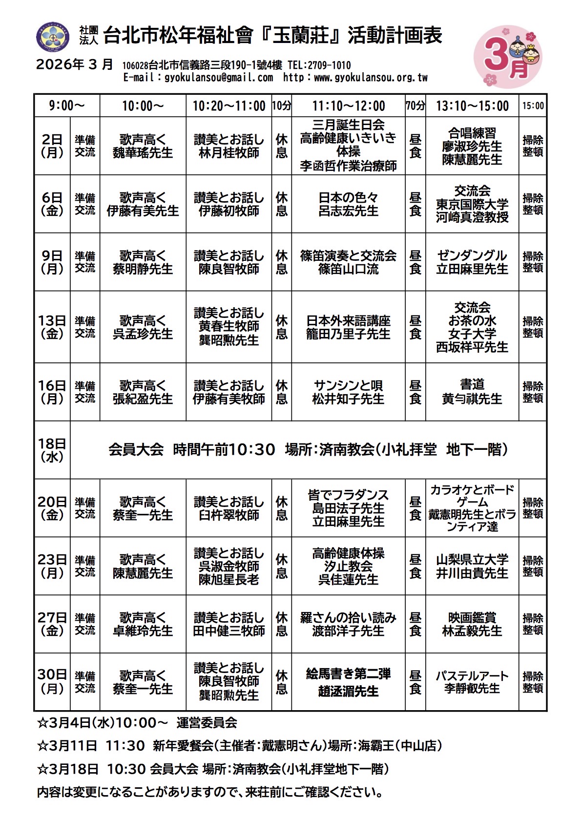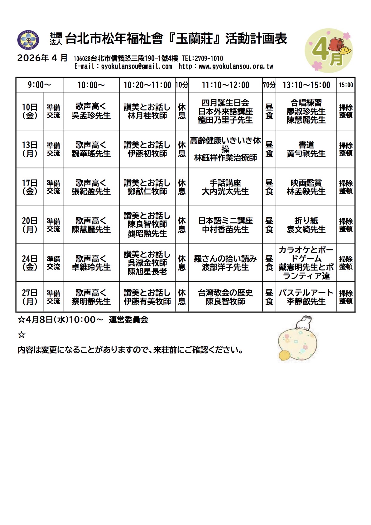 2026年4月份活動計画表